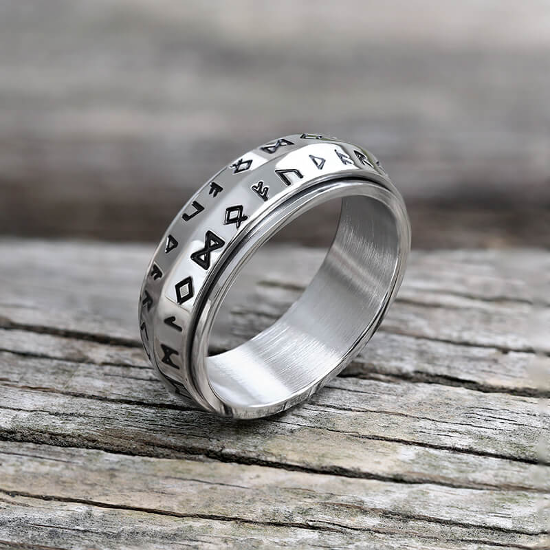 Nordic Viking Runes Stainless Steel Spinner Ring