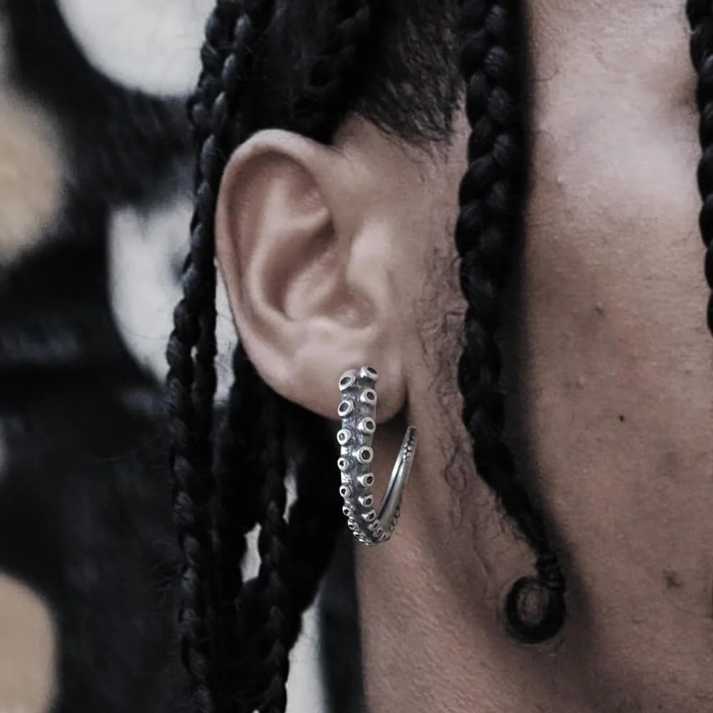 This stud earring is made of sterling silver with the theme pattern of the octopus arm, which creates a look that is stylish and masculine. Octopus is a symbol of emotions, intelligence, flexibility, creativity and so on. The piece is an eye-catcher and so especially unique for your jewelry collection. Get yours today!