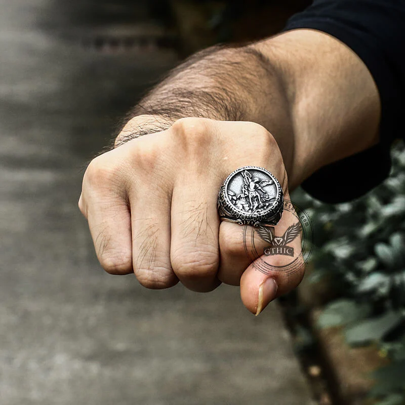 Archangel Saint Michael Stainless Steel Men’s Ring Handcrafted